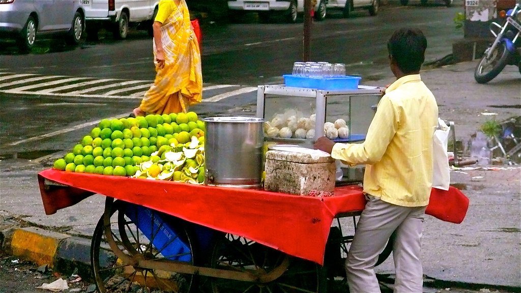 Coconut water is a natural refreshing drink..it is good for health too. It is found in every market . Coconut water is sold at every nook and corner on the streets in Delhi. Road side coconut shop vendors have coconut in huge quantity. When some one buy the fresh coconut from them , they chop off the top portion and insert a straw and place it in your hands. After you finish drinking it, you can even ask them to cut it in half and enjoy the creamy textured , tender coconut jelly ( in hindi it is called naariyal ki malai) . Many people ask to shop wala to pack the coconut’s creamy portion.